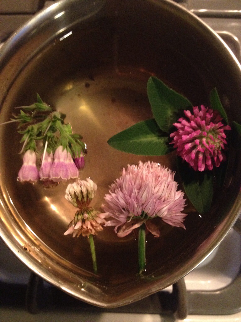 Clover (red & white), comfrey, and chive. Hail the witch goddess!
